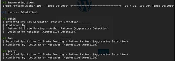 It has, however, found a couple of usernames, Admin, Tom and Jerry