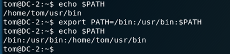 After this I changed $PATH to allow me to use more commands on the machine using export PATH=/bin:/usr/bin:$PATH