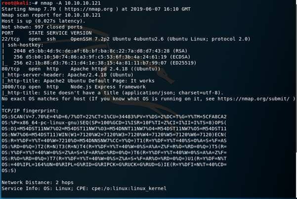 A port scan using nmap –A 10.10.10.121 reveals the following.