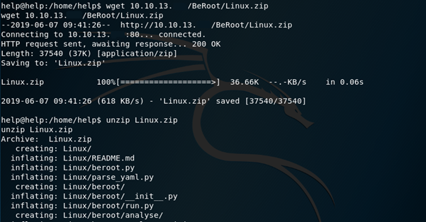 Over on Help, I downloaded an enumeration script called BeRoot and unzipped the contents.