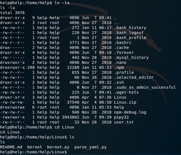 Ok, now I want to get the root flag, I started up an apache server on my machine to allow me to download some scripts onto Help.