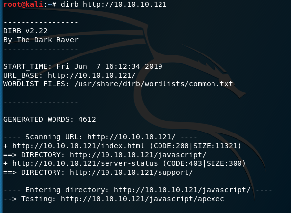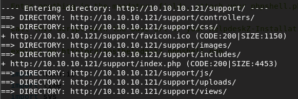 Further enumeration of this using dirb http:///10.10.10.121 reveals a few directories to look at, I’m particularly interested in /support.