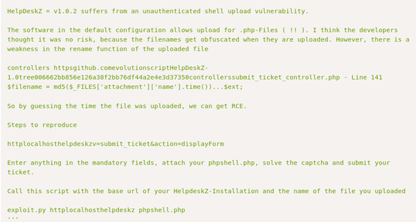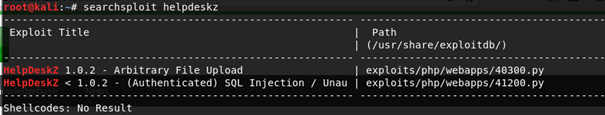 Using searchsploit helpdeskz provides 2 known exploits.