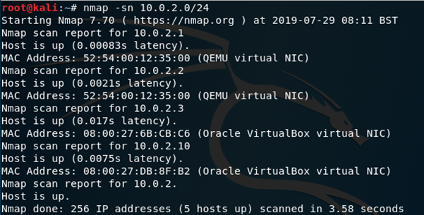 I began using nmap -sn 10.0.2.0/24 to perform a ping sweep on my network, this reveals the IP address of DC-4 as 10.0.2.10