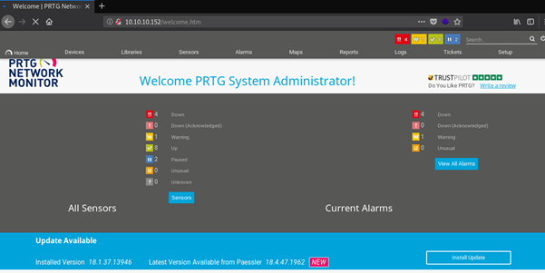 I decided to try the default credentials to log on PRTG Network Monitor (prtgadmin:prtgadmin), unfortunately they didn’t work.