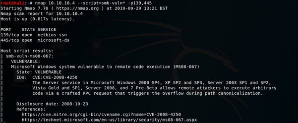 The first portscan doesn’t reveal much other than netbios, smb and that the machine is running Windows XP.
