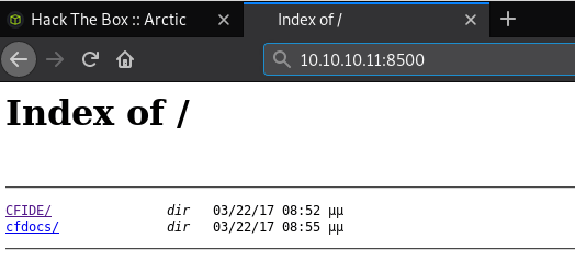 Using FireFox to navigate to this port reveals 2 directories that I have access to