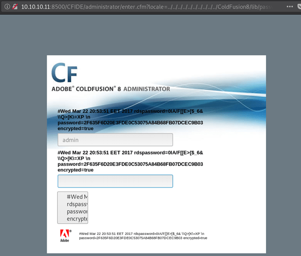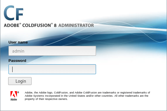 Navigating to CFIDE brought me to a ColdFusion 8 login panel.