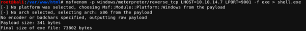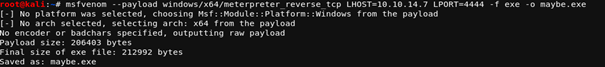 To escalate my privileges I decided to attempt to create a meterpreter session, this would allow me to use metasploits post modules and easily exploit known vulnerabilities. I used msfvenom to create a meterpreter shell. I then used powershell within the reverse shell to download the file as shell.exe