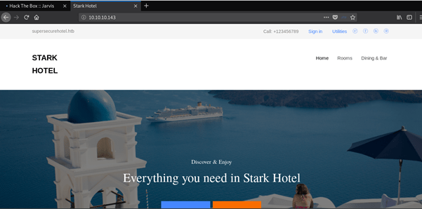 I navigated to the webpage hosted on port 80, this brought me to a site for Stark hotel.