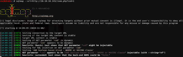I found a few interesting things upon enumerating the pages, the most interesting of which was the rooms page. This page allowed user input via GET request in the URL.