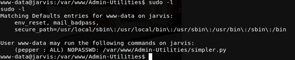 Using sudo –l reveals that www-data can run this file as a user called pepper – great!