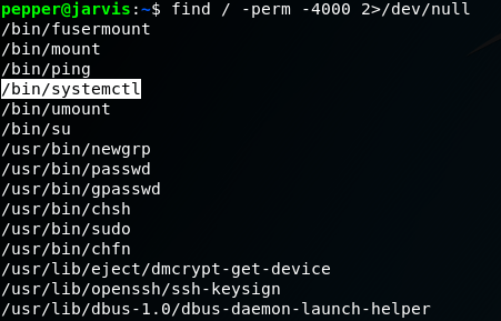 Some basic enumeration, searching for files with SUID bits set revealed most of the usual binaries and /bin/systemctl