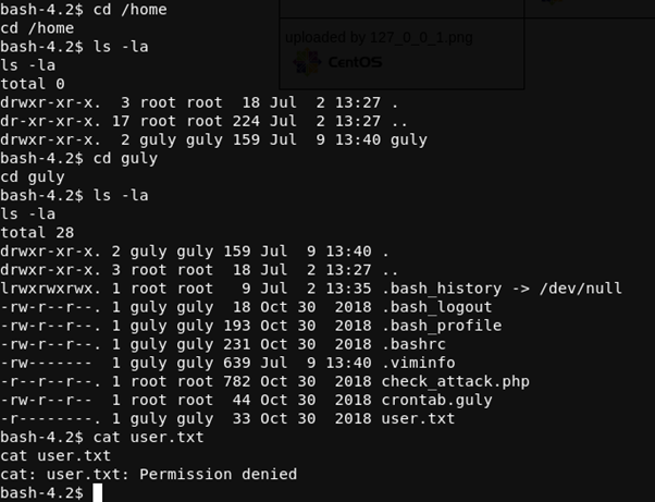 I took a look at the other files in the home directory for guly, crontab.guly revealed that check_attack.php was run every 3 minutes.