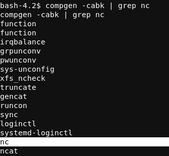 I checked to see if nc was available on the box using compgen, as including slashes stopped the injection from working properly.