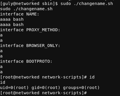 After grabbing user.txt I used sudo –l to determine what guly could run as sudo, there is one file called changename.sh that they could run.