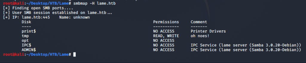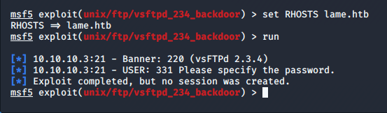 I started by adding Lames IP address 10.10.10.3 to /etc/hosts as lame.htb.